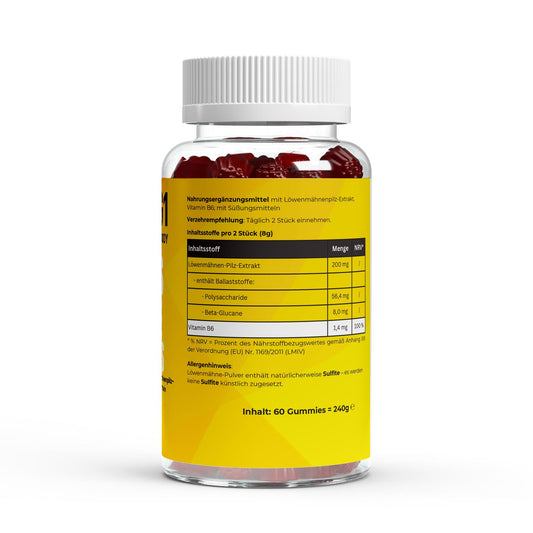 NDG1 - Löwenmähne ( Lion's Mane ) + Vitamin B6 Gummies - 60 Stk.