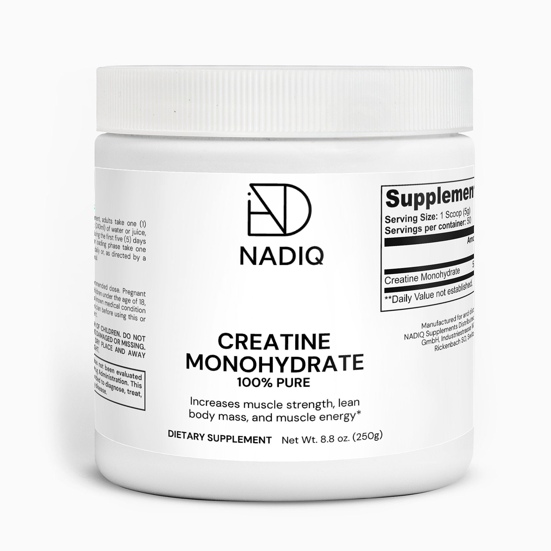 NADIQ, Kreatin Monohydrat – Für Leistung, Ausdauer & Regeneration (250 g)