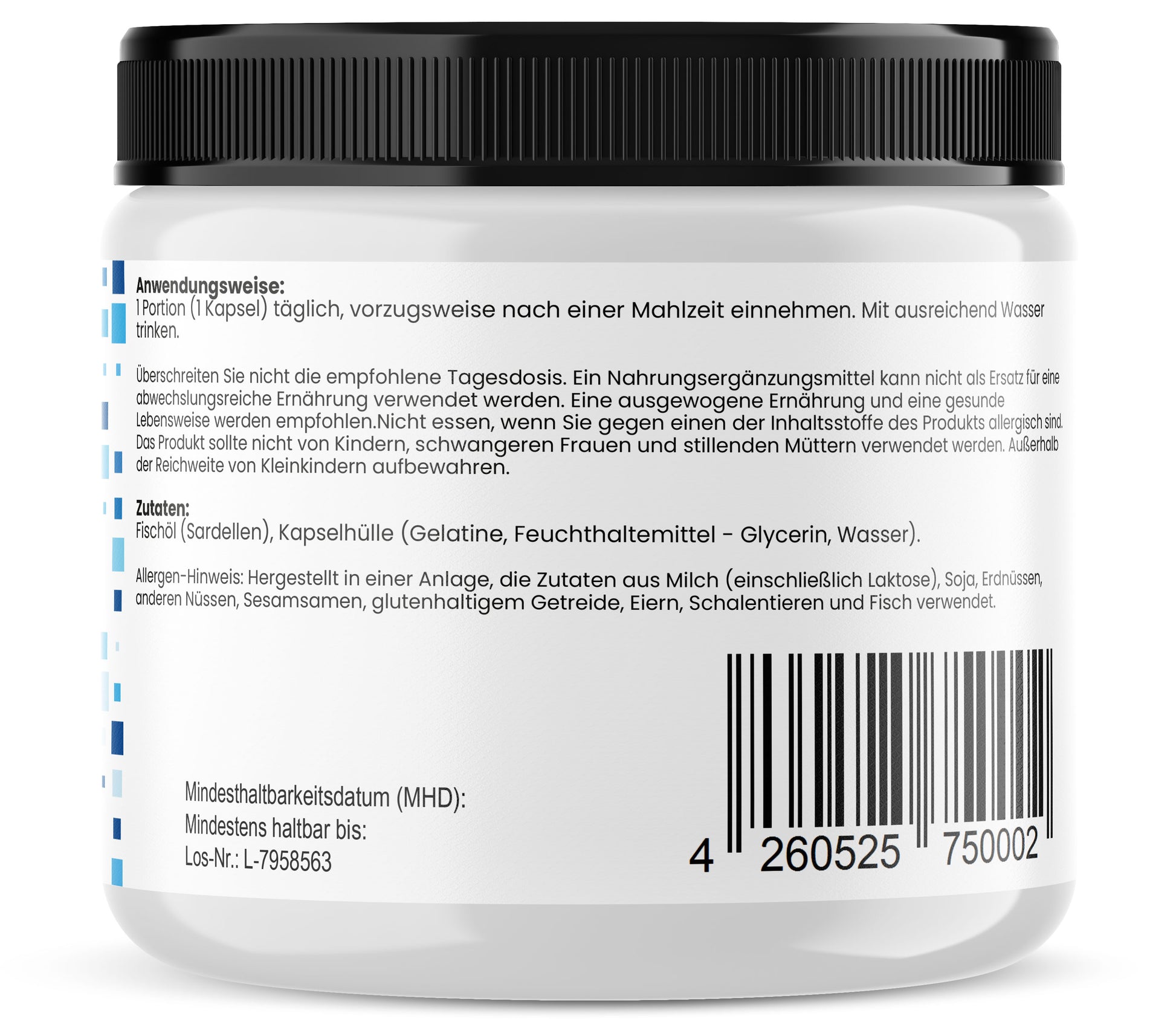 - Hochdosiert: Jede Kapsel liefert 1000mg reines Fischöl.